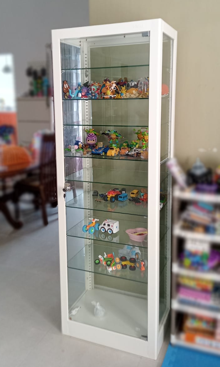 Etalase dengan kaca yang bisa disesuaikan dengan kebutuhan dan keinginan Anda.